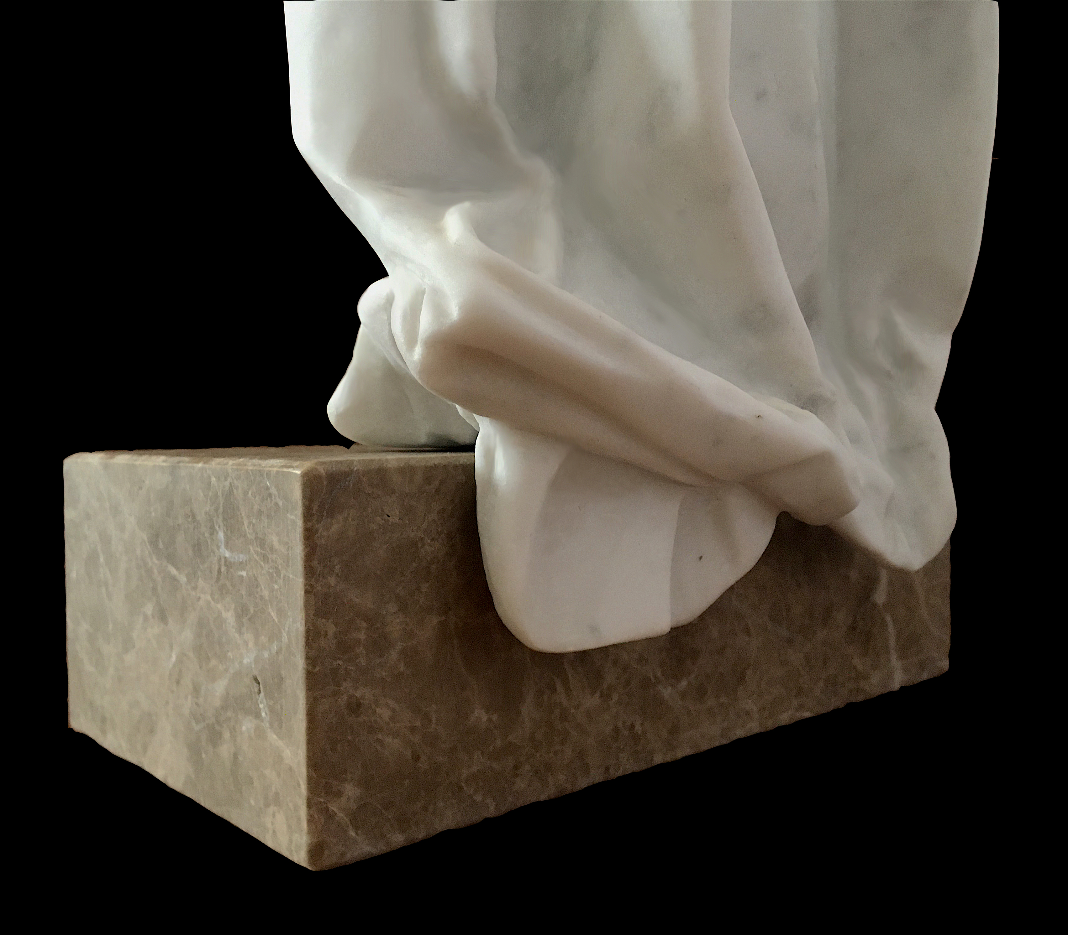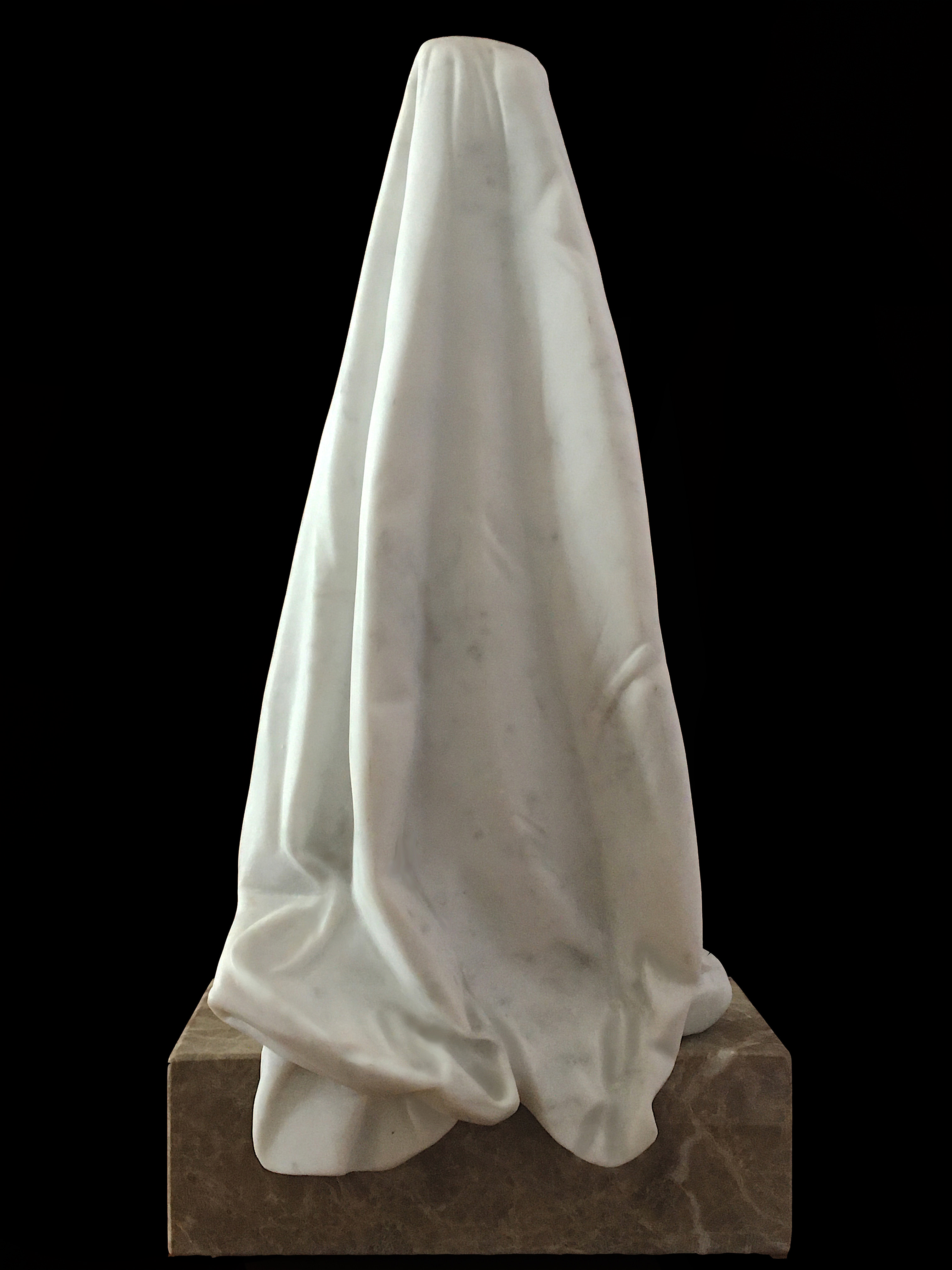 Il velo è sinonimo di buio, in questo senso, vale a dire che è l’elemento che in senso materiale copre e non ci permette di vedere quello che sta sotto. Questa scultura raffigura il velo che è stato appena tolto, messo da parte e lasciato cadere; per questo motivo anche la forma e la posizione sul basamento sono importanti.
